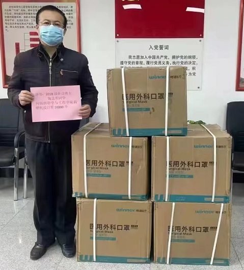 学校纺织工程1987级校友、上海嘉麟杰纺织品股份有限公司总裁杨世滨,捐赠300套隔离衣助力母校师生支援津门抗疫服务;染整工程1993级校友、山东如悦医疗科技有限公司董事长李付杰,捐赠两箱近百套医用防护服;自动化2011级校友胡国武,捐赠50套防疫防护服、500只N95口罩、5000只一次性口罩;机械学院2001级校友、天津华凯嘉诚科技有限公司总经理嵇境䶮,2004级校友、天津韦梯斯塔科技有限公司CEO王亚明,2004级校友、现任职于博世公司的滕立智,2005级校友、现任职于SMC公司的陈洪军,2005级校友、广东科洛空间装饰设计有限公司总经理樊晓阳等捐赠了300套防护服、护目镜以及大批医用外科口罩、防护手套。另外,纺织科学与工程学院在读博士生陈志军和本科生周琪也分别为学院捐赠了10000只和20000只口罩。还有一些匿名和不愿公开姓名的校友为学校捐赠了各类防疫物资。