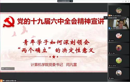为深入学习宣传贯彻党的十九届六中全会精神,进一步推动“迎盛会、铸忠诚、强担当、创业绩”主题学习宣传教育实践活动走深走实,计算机科学与技术学院党委持续推进“党课开讲啦”活动。