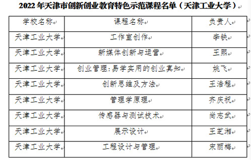 近日,市教委公布了2022年天津市创新创业教育特色示范课程名单,我校《工作室创作》 《新媒体创新与运营》 《创业管理:易学实用的创业真知》 《创新思维及方法》 《管理学原理》 《传感器与测试技术》 《展示设计》 《工程设计与管理》8门课程被评为2022年天津市创新创业教育特色示范课程,获批数量与天津大学并列全市高校第一位。