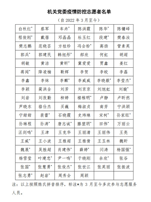 这场战疫,还在持续,它需要全校上下携起手来、共克时艰、同心抗疫。机关党委将继续响应学校党委的号召,充分发挥机关各党支部战斗堡垒作用和党员先锋模范作用,让党旗始终高高飘扬在抗疫一线。(审稿:机关党委 陈华 白秋红 编辑:党委宣传部 柳婷)