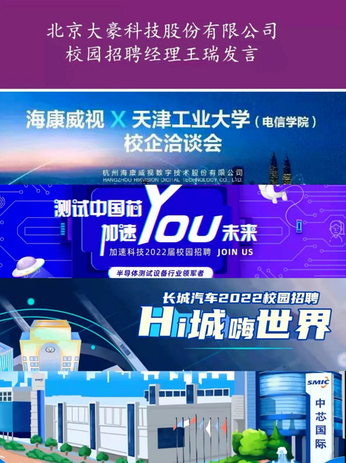 随后,五家企业代表相继围绕公司简介、生产经营、产品特色、热招岗位、福利待遇等方面进行了详细介绍,大家纷纷表示学院人才培养模式与企业用人需求高度匹配,希望进一步加强校企间科研、人才、就业等领域的全面合作,实现共同发展、互利共赢。其中中芯国际集成电路制造有限公司、海康威视数字技术股份有限公司负责人表示,近年来,电子与信息工程学院毕业生签约数占公司在天津工业大学总签约人数的一半以上,非常感谢学院为公司培养了一批又一批的优秀人才。