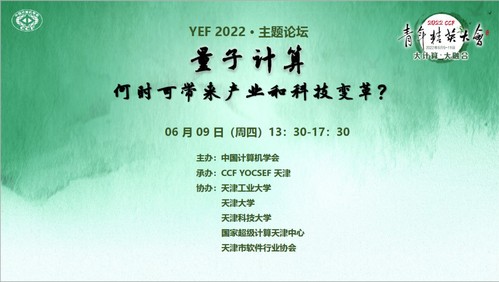 2022年6月9日至11日,中国计算机学会在北京举办第十二届青年精英大会(YEF2022),我校计算机科学与技术学院青年教师刘丁在本次大会上作为执行主席组织筹办了“量子计算何时可带来产业和科技变革”主题论坛。此次论坛由中国计算机学会主办,天津工业大学、天津大学、天津科技大学、国家超级计算天津中心、天津市软件行业协会协办,YOCSEF天津分论坛承办。量子计算科研领域的一线学者、产业专家汇聚一堂,针对量子计算当前的发展状况和产业化进程进行深入思辨讨论,为我国的量子计算发展建言献策。本次论坛吸引了近2万名线上观众观看直播,新华社、中国日报英文版、中国计算机学会、搜狐、网易等重要媒体和学术机构予以报道,阅读量逾百万,产生了广泛的社会影响。