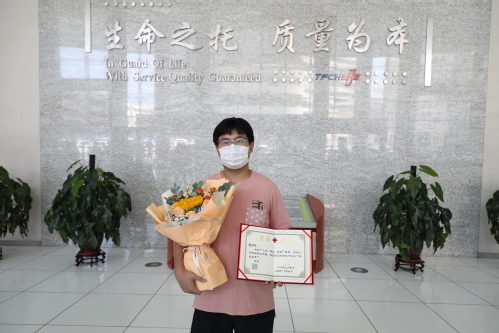 今年3月,国子轩得知自己与一名血液病患者初配相合,便积极配合工作人员进行体检等准备工作,得知高度匹配后毫不犹豫签署捐献同意书。2022年6月18日,国子轩入住天津市第一中心医院,经过四天预处理,最终完成造血干细胞的采集与捐献。
