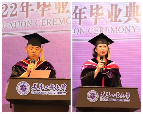 毕业典礼在雄壮的国歌声中拉开帷幕。徐军副院长和庞博副院长分别宣读了天津工业大学艺术学院2022届本科毕业生学士学位人员名单及天津工业大学艺术学院2022届硕士毕业生学位人员名单。田贵平书记宣读了《天津工业大学关于表彰2022届优秀毕业生的决定》。