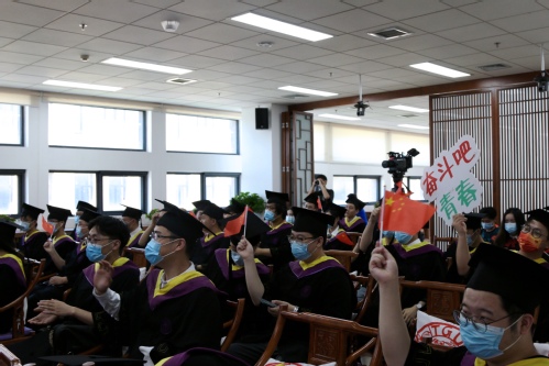 毕业生代表陈鹏发言,回顾了大学四年的学习生活与拼搏付出,表达了学子们的心声并感谢学校和学院的辛勤培育。他表示,作为新时代的青年,2022届毕业生将肩负民族复兴大任,奔赴新的旅程,接续奋斗。