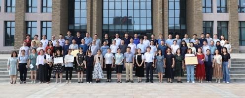 会议最后,常务副校长陈莉、市教委高教处处长徐震、校党委宣传部部长何虹与党委教师工作部部长蔺洪全分别为获得校级金牌本科基层教学组织、校级教学成果一等奖、校级课程思政基地建设项目的代表颁奖。