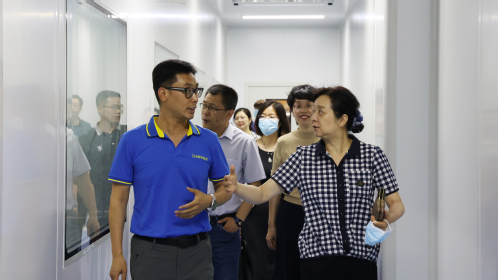 陈莉常务副校长一行首先参观了公司国家级标准实验室、总部管理运营中心、产研中试智能制造基地和生产车间,并对公司产品的性能及优势、工艺技术路线、新产品研发推广情况进行了全方位了解。