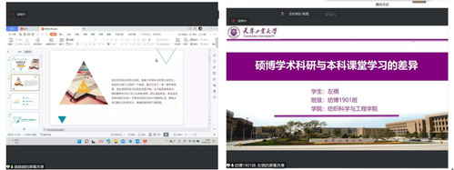 接着,博士生第二党支部顾家玉同学结合自身实际分享了科研的心得和体会,帮助同学们了解科研过程。左祺同学运用类比的方式分析了本硕博学习过程的区别,让同学们认识到本科学习和研究生阶段学习方式方法的不同。