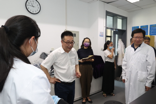 为深入贯彻落实习近平总书记关于安全生产的重要论述,坚持人民至上、生命至上,全面排查校园安全风险隐患,确保暑期校园安全稳定,2022年7月15日上午,校党委书记俞绍平,副校长张玉波、刘义一行对校园安全生产工作进行了实地检查。党委(校长)办公室、党委学工部、保卫处、后勤管理处、实验室管理处、材料科学与工程学院主要负责人陪同检查。