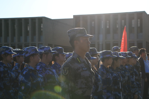 训前朗诵军训要求,“穿衣戴帽须整洁,进办公室喊报告;说话声音要洪亮,行动坐卧有气质;整理宿舍标准高,打扫卫生抢着干......”训后有序集体就餐,以心理拓展、队列操练、饭前一支歌等形式,增强了新生的作风意识和集体意识。艰苦的训练中,也不乏有趣的拉歌比赛,从军歌、红歌到校歌,全面激发了学生爱国爱校热情。