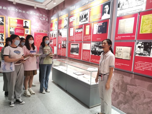 漫步在天津工业大学红色文化研究与教育基地,马克思主义学院党委书记聂丽琴以李大钊、于方舟和张太雷三位革命先驱姓名的由来为线索,对中国共产党伟大建党精神的主要内容及其体现进行了详尽解读。新生们触摸着中国革命的红色记忆,感知着革命先烈的丰功伟绩,“沉浸式”感受着百年大党的为民初心。