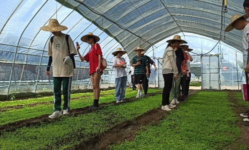 “毛毛匠村是第二批全国乡村治理示范村,稻蟹混养和西瓜种植是咱们这的特色,为农文旅产业发展注入新的活力。”化学工程与技术学院的大学生们一边兴致勃勃地听着宁河区东棘坨镇农民热情地介绍着当地产业发展、人居环境和乡风文明的变化,一边参观着荷塘景观、设施农业大棚和稻田区域,感受着生态之美和产业活力。