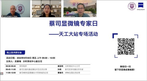 该活动采用线上形式,由分析测试中心副主任武春瑞主持。分析测试中心主任姜亚明对分析测试中心和蔡司公司分别作了简要介绍,对蔡司公司多年来在仪器维护、技术指导、人员培训等方面的大力支持表示感谢,对推进中心和蔡司公司的深入合作、提升学校师生创新研究能力提出了建议。蔡司公司区域经理秦艳女士对专家日的发起、与中心的深入合作规划等做了介绍。蔡司公司技术专家孙萌、曹春杰分别作了题为“蔡司扫描电镜成像技术及应用分享”、“蔡司X射线显微镜在不同领域的应用”的专题讲座,并结合我校在如何利用现有的仪器拍摄高质量的照片、磁性样品的制样分析、复合材料的三维表征等问题进行了针对性技术剖析、研究方案解析及相关成果介绍。