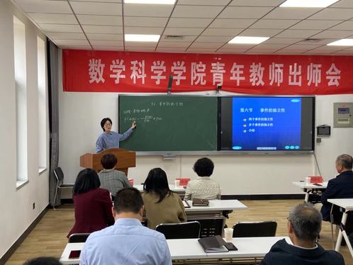 2022年10月13日,数学科学学院在B324教室举办了2022年青年教师出师会。本次出师会特邀天津理工大学理学院院长宋眉眉教授,天津大学数学科学学院副院长史国良教授,天津市教学名师、校教学督导黄东卫教授、天津市教学竞赛一等奖获得者熊友兵老师和胡碧金老师担任评委。学院常务副院长裴永珍教授、学院副院长郭永峰教授、青年教师指导教师、各系主任、新入职教师出席并观摩了出师会。会议由数学科学学院吕云飞教授主持。