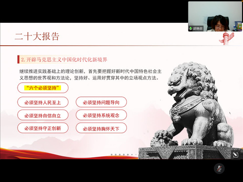2022年11月10日,纺织科学与工程学院党委书记胡艳丽在线上进行题为《奋进伟大征程 谱写时代华章》的党的二十大精神宣讲。纺织科学与工程学院全体教职工、学生党员、发展对象与积极分子参加。