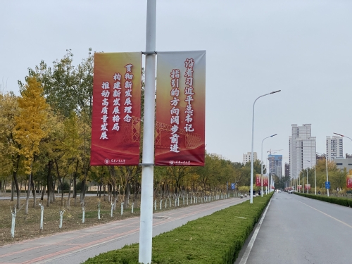 充分发挥校园网、官微等宣传阵地作用,严格落实“首页首屏首条”要求,多形式宣传解读党的二十大精神。第一时间在校园网“学习进行时”栏目发布《习近平:高举中国特色社会主义伟大旗帜 为全面建设社会主义现代化国家而团结奋斗》《习近平:始终坚持一切为了人民一切依靠人民 以中国式现代化全面推进中华民族伟大复兴》等权威内容;校园网、官微开设“聚焦党的二十大”专栏,及时宣传报道学校学习宣传贯彻党的二十大精神的动态、成效。学校官方微信公众号及时转发推送“一图速览二十大报告”“快来打卡!二十大报告中的新表述新概括新论断”“二十大报告中关于教育的这些话,掷地有声”等内容,不断把学习宣传贯彻工作引向深入。加强与社会媒体联动,中国纺织报、天津日报、津云、今晚报、天津教育报等多家媒体对我校学习宣传贯彻党的二十大精神进行报道。天津电视台“天津新闻”“二十大时光”栏目对我校科研工作者在党的二十大精神鼓舞下,胸怀“国之大者,”辛勤耕耘、埋头苦干的典型事迹进行报道,产生了良好的社会反响。制作主题道旗130面,主题橱窗展板30个,主题展架1块,主题桁架4块,悬挂、摆放于校园显著位置;在行政中心、教学楼、食堂等重点区域张贴主题海报近90张。同时,学校各基层党组织也充分利用本单位微信、网站、橱窗、展架等宣传载体,做好线上线下宣传。