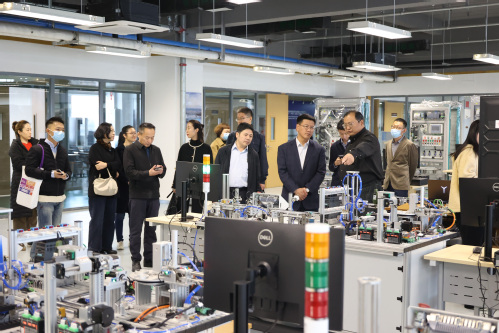 在天津港保税区人力资源和社会保障局局长鲍官发的陪同下,胡英江副书记一行走访调研了天津新松机器人自动化有限公司、天津正天医疗器械有限公司以及滨海新区先进制造职业技能公共实训中心。