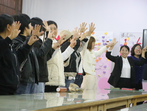 活动中,家长们纷纷交流自己在亲子关系、家庭教育等方面的困惑,肖建伟老师耐心向家长们介绍孩子青春期的身心发展特点,并现场教授呼吸放松方法,指导家长们在出现焦虑时如何通过自身调节缓解紧张情绪。在“手掌画”环节,老师和家长们齐心合力,共同配合,绘制出象征“心连心”的手掌图案。活动现场,大家群策群力,献计献策,气氛热烈。