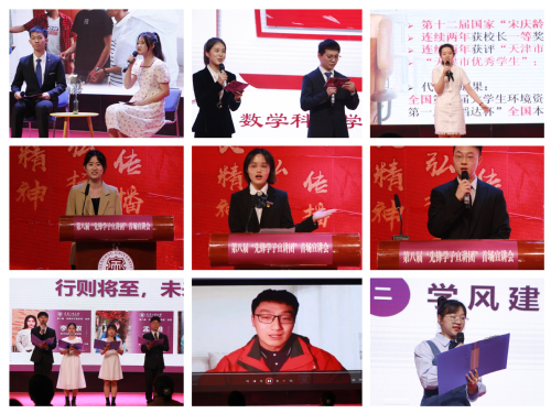 本届“先锋学子宣讲团”成员中,全国“青马工程”高校班优秀学员、2022年天津市高校资助育人宣传大使、人文学院李龙锐,校十佳大学生、法学院黄雨晴和纺织科学与工程学院钟智研、周尧,自立自强学生代表秦云龙,低谷逆袭的就业先锋、经济与管理学院程宇航,天津市先进学生集体、自动化Z1901班级代表宣艳等20余人以个人演讲、集体朗诵、相互访谈、视频连线等形式,围绕大学日常学习、科研竞赛、志愿服务、考研支教、就业创业等主题,分别分享了自己励学笃行、潜心科研、合理规划、勇攀高峰、低谷逆袭、敢为人先、服务奉献等切身经历和成长感悟,充分展现了优秀天工学子和先进班集体积极向上的精神面貌,用实际行动书写天工学子“知行榜样,薪火相传”逐梦路上永不言弃的青春故事,用内容丰富、形式新颖、感情真挚的表达,赢得了现场师生的阵阵掌声。