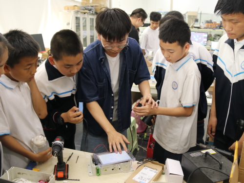 随后,在志愿者的指引下,中学生们来到学院特色实验室进行参观。通过志愿者细心讲解和操作演示,将高精尖的前沿科学以最直观有趣的方式展现在眼前。中学生们在动手操作和与志愿者交流的沉浸式体验中,领略到科学的魅力。