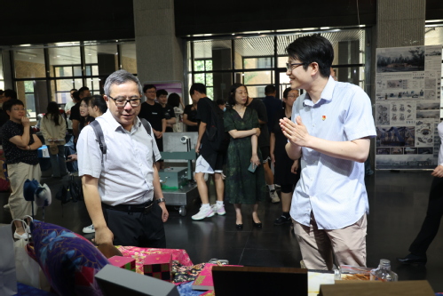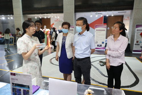 为进一步提高本科生毕业设计(论文)的质量与水平,打破学院(部)、学科专业壁垒,建设多学科交叉融合的人才培养平台,2023年6月6日,天津工业大学首届“新四科”本科毕业设计(论文)项目成果展在艺术学院一楼展厅开展。校长夏长亮院士、常务副校长陈莉、中国纺织服装教育学会会长倪阳生前往参观并指导工作。