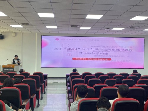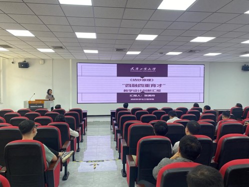 张美玲老师和赵晋老师分别以《纺纱原理“四融四重育才”教学设计创新汇报》和《基于“SBAEI”设计的融合进阶型课程思政教学微体系构建》为题,从专业课程思政教学设计、教学方法创新等多方面入手,结合课程思政教学创新实施方案,对专业课程体系的知识重构、多维度挖掘课程思政元素、阶梯教学体系的构建等多方面内容进行了详细讲述。