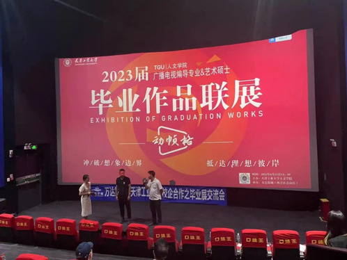 2023年6月13日,“动帧格”——天津工业大学2023届广播电视编导专业、艺术硕士毕业作品联展在天津万达影城(西青社会山IMAX店)成功举办。本次毕业展活动由我校人文学院传媒艺术系主办,万达影城(西青社会山IMAX店)协办。人文学院广播电视编导专业师生200余人参加了此次作品展。