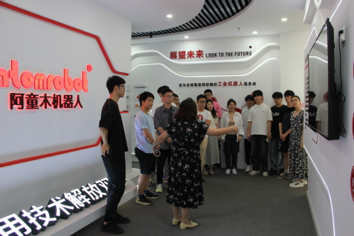 公司人力资源总监张荣梅带领师生参观了企业文化展厅,介绍了企业的发展历程、企业文化、发展目标、核心产品等相关情况。作为行业领先的高速机器人专家,阿童木机器人以“用技术解放双手”为使命,专注于并联Delta机器人、高速SCARA机器人等智能制造技术的研发与创新,希望用自己的产品和技术帮助不同行业的企业完成产业升级、提高生产效率。