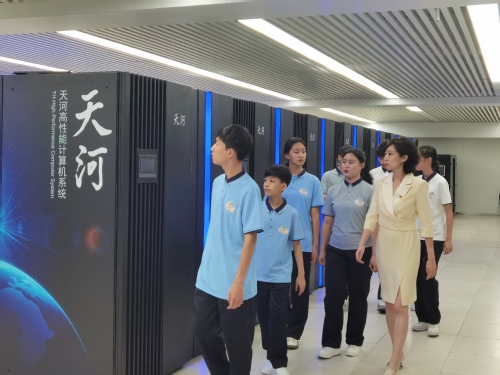 在国家超级计算天津中心,党的二十大代表、国家超级计算天津中心党组书记兼应用研发首席科学家孟祥飞老师亲切接待了师生一行。孟祥飞书记带领同学们参观了中心展厅和机房并与同学们开展了座谈,与师生交流了十年来我国科技实力的快速发展情况和关键技术不断取得的突破的生动事例。