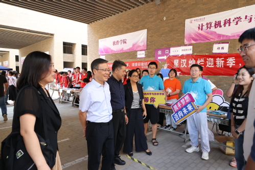 上午,校党委书记沈江、校党委副书记胡英江一行先后来到励志广场、西苑食堂、“一站式”学生社区服务大厅、学生宿舍了解迎新工作开展情况,并与参加迎新工作的师生及工作人员亲切交谈。沈江书记仔细询问迎新各项工作进展情况,向忙碌在迎新一线的师生志愿者和工作人员表示慰问,对各学院、各部门有条不紊推进迎新工作表示感谢。沈江书记还与新生及家长进行亲切交谈,仔细询问新生来校报到的感想和感受,勉励他们尽快适应新的学习和生活环境,以最好的状态开启美好的大学生活。