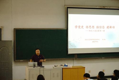 为深入学习宣传贯彻党的二十大精神,坚持以习近平新时代中国特色社会主义思想铸魂育人,引导新生学习党的理论知识、深化对党的理解认知,做好新生入党启蒙教育,2023年9月12日上午,经济与管理学院党委书记刘伟在第一公共教学楼为学院全体2023级本科新生讲授入党启蒙教育专题党课。