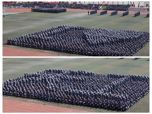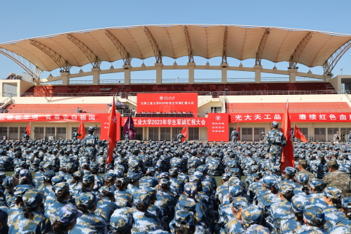 光大天工品格,赓续红色血脉。伴随着激动人心的倒计时,军训成果汇报展示正式开始。千人方阵不断变换着字样,同学们高呼“我爱天工”和“严谨、严格、求实、求是”的校训……方队表演强劲震撼,口号铿锵有力,表达了全体2023级新同学对祖国和学校的深情祝福和立志成才的坚强决心。