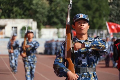 胡英江副书记下达分列式开始命令后,伴随着激昂的《中国人民解放军进行曲》,各营连方队高喊着响亮的口号,迈着坚定有力、矫健整齐的步伐,英姿飒爽地依次走过主席台,展示军训期间艰苦训练的成果。