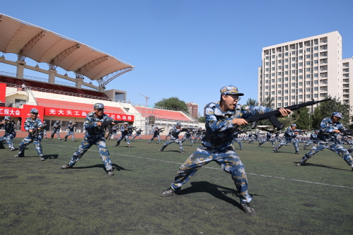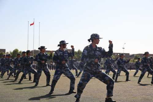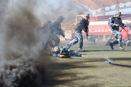 接下来,同学们的军体拳表演精神抖擞,招式敏捷;刺杀操演练气势如虹,豪气万丈;匕首术展示刚柔并济,干脆利落;战术演练分队配合默契,身手矫健。一系列的汇报展示交织出一场沙场秋点兵的铿锵画卷,将汇报大会推向高潮,赢得全场阵阵喝彩和掌声。