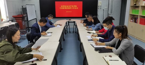 为认真落实中共中央办公厅《关于加强新时代廉洁文化建设的意见》,进一步严明政治、工作和生活纪律,强化管党治党主体责任,持续巩固深化作风建设, 2023年10月11日,法学院/知识产权学院在309会议室对全体行政管理人员开展廉政集体谈话。学院党委书记马涛、学院纪委书记兼党委副书记李兰、副院长韩其峰以及全体行政管理人员参加会议。