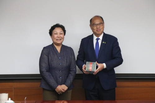 香港理工大学时装及纺织学院院长Erin Cho和我校纺织科学与工程学院副院长巩继贤分别介绍了各自在纺织领域的发展特色和取得的科研成果。