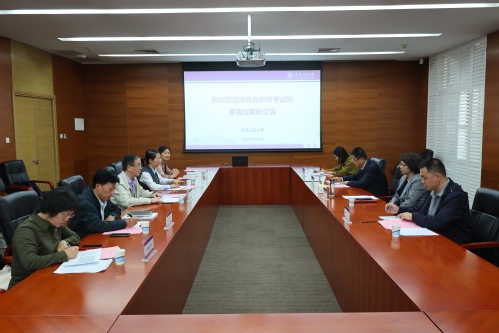 2023年10月19日下午,河北省教育厅党组成员、省教育考试院党委书记、院长郝艳红,副院长郭文明一行来我校调研。校党委书记沈江亲切会见,对郝艳红院长一行到访天津工业大学表示热烈欢迎。