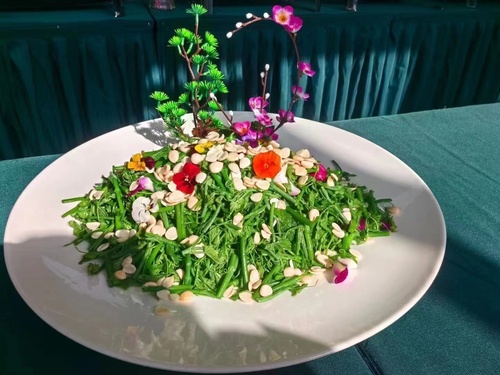 10月27日中午,各食堂以美食免费品鉴、互动体验等方式将本次美食节的气氛推向高潮。活动现场人头攒动,前来品鉴的师生络绎不绝。学校党委副书记胡英江、副校长张玉波来到现场,与同学们一起共享美食盛宴。各餐饮展台纷纷拿出自家绝活,上百余种美味佳肴精彩呈现。金针鲈鱼卷、山药紫薯糕、柠檬虾尾、火山盐香煎牛肉粒、蓝莓菇、戚风蛋糕……一道道美食让师生们尽饱口福、大呼过瘾。很多菜肴吸引到师生驻足拍照、鉴赏,现场气氛热闹非凡。