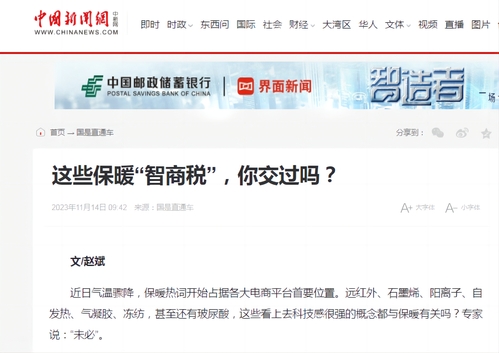 近日气温骤降,保暖热词开始占据各大电商平台首要位置。远红外、石墨烯、阳离子、自发热、气凝胶、冻纺,甚至还有玻尿酸,这些看上去科技感很强的概念都与保暖有关吗?专家说:“未必”。