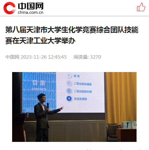 天津工业大学化学学院副院长臧洪俊教授介绍,本次团队赛课题展示以“直接空气捕集CO₂技术”为主题,紧贴时代前沿,充分体现了绿色低碳发展思想,有助于推动“双碳战略”创新发展,培育青年科技创新人才。她表示,本次竞赛中各参赛队思想重视、准备充分、团结拼搏,进一步激发了大学生对学习化学基础知识的热情,增强了团队合作精神,展示了新时代大学生的青春风采。
