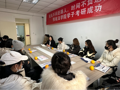 星光不负赶路人,时间不负追梦人。考研在即,为缓解考研学子备考压力,提振学子士气,11月30日,法学院在西苑六号楼“一站式”学生社区举办2024届毕业生考研冲刺慰问活动。学院党委书记马涛,党委副书记李兰,副院长李树成,2020级辅导员及班导师参加此次慰问。活动由学生工作办公室主任宋至刚主持。