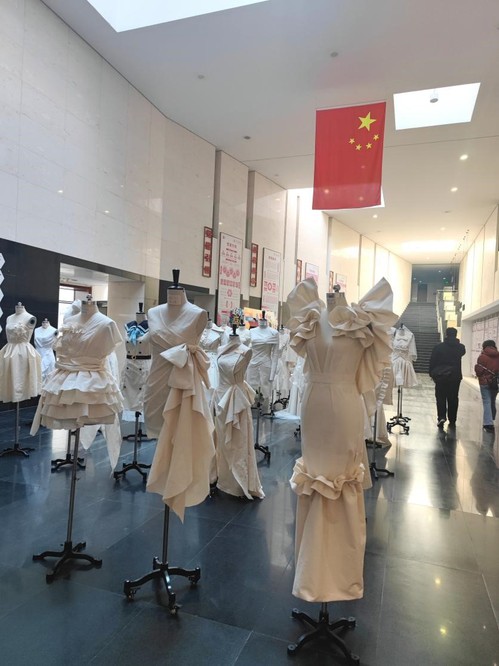 12月1日-12月8日,由我校纺织科学与工程学院主办,以服装设计与工程专业《女装结构设计》课程实践成果为主要内容,“衣与人·结构”为主题的教学实践作品展在纺织科学与工程学院一楼大厅举行。本次成果展示为期一周,集中展示来自我校服装设计与工程专业2021级学生的52件服装设计作品。