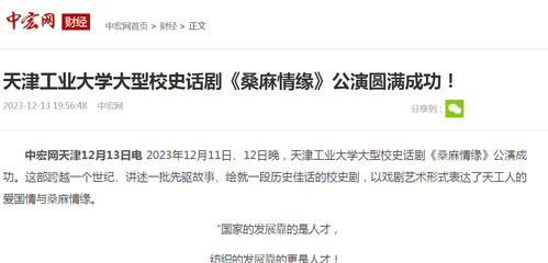 该话剧的成功公演,增进了广大师生对学校历史、学校精神的了解,激发了师生爱校荣校的情感,成为学校文化建设、美育工作开展的一张靓丽品牌。天津工业大学团委负责人介绍到,学校将做好对该剧的宣传推广,进一步唱响天工声音,助力学校一流文化传承创新,为建设高等教育强国、实现中华民族伟大复兴作出新的更大的贡献。(中宏网特约作者王敏报道 图文/由主办方提供)