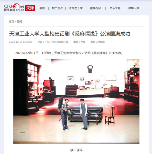 2023年12月11日、12日晚,天津工业大学大型校史话剧《桑麻情缘》公演成功。