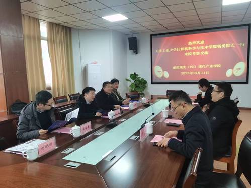 在江西财经大学虚拟现实(VR)现代产业学院,调研团队一行与学院领导班子成员展开座谈,双方分享了创建现代产业学院的实施思路,重点了解“一园一院一产一盟一基地”产教融合创新平台的建设经验,实地参观了虚拟现实(VR)实验室。在百度飞桨(江西)人工智能产业赋能中心,调研团队一行围绕云计算、人工智能、元宇宙、智能电网信息工程等多个领域展开热烈交流。在江西微博科技有限公司,调研团队一行围绕计算机软硬件开发、元宇宙数字人、VR虚拟现实技术展开交流,希望双方未来进一步推动现代产业学院筹建合作。