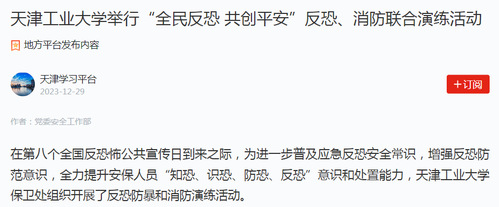 天津工业大学举行“全民反恐 共创平安”反恐、消防联合演练活动