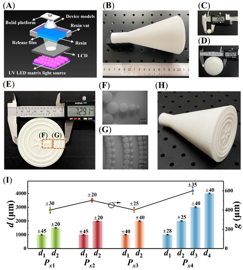 如图3所示,为了验证超构天线的性能,采用光固化3D打印技术制造了该器件并进行了实验表征。如图4所示,实验结果表明,所设计的超构天线能够实现亚波长尺度超长焦深(~25.3λ)超衍射极限波束聚焦(~0.86λ)。