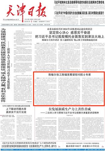 所到之处,各位院士专家表达了对习近平总书记视察天津的激动和喜悦之情,畅谈了学习习近平总书记重要讲话精神的体会和感受,表示将牢记嘱托,奋发有为,加强科技创新,推动文化传承发展,加快形成新质生产力,更好服务国家和地方发展。