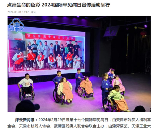津云新闻讯:2024年2月29日是第十七个国际罕见病日,由天津市残疾人福利基金会、天津市肢残人协会、武清区残疾人联合会联合主办,由津湾演艺、天津工业大学、武清区委统战部新阶层实践基地、太阳语罕见病心理关怀中心承办的“点亮生命的色彩-2024国际罕见病日宣传活动”在津湾大剧院小剧场举办。罕见病病友服务组织负责人、病友代表、爱心企业代表、高校志愿者团队及媒体朋友们共100余人参与活动。