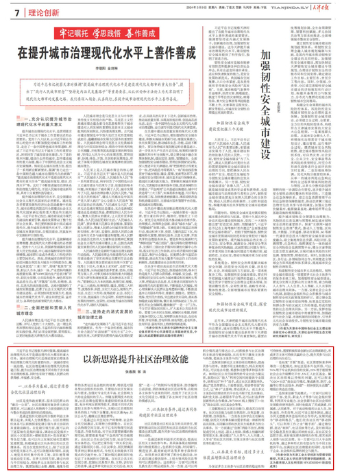 习近平总书记视察天津时强调,提高城市治理现代化水平是建设现代化大都市的重大任务。城市治理现代化是推进国家治理体系和治理能力现代化的重要内容,一流城市要有一流治理。社区治理是城市治理现代化的基础工程,提升社区治理效能不仅有助于夯实城市治理的根基,同时也有助于增强人民群众的获得感、幸福感、安全感。